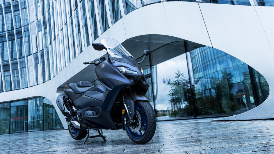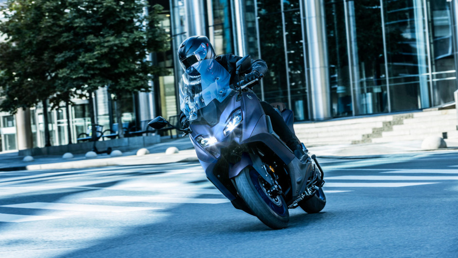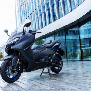 Doté d’un habillage compact aux lignes et au style sportifs, le TMAX est le maxi-scooter de sport le plus dynamique et le plus sophistiqué jamais conçu par Yamaha. Les flancs avant aérodynamiques et le double optique plus fin confèrent à ce maxi-scooter de haute technologie un look supersport, tandis que son ergonomie revue et optimisée le rend encore plus confortable. Son moteur EURO5 de 560 cm³ développant 35 kW et sa transmission à variation continue confèrent à ce maxi-scooter les performances d’une moto et la praticité d’un scooter.