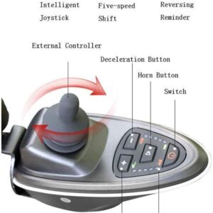Joystick intelligent universel étanche à 360 degrés, facile à contrôler, il est doté d’un voyant d’alimentation, de la mise sous / hors tension, du klaxon, de l’indicateur de vitesse, de la vitesse de montée et de descente.