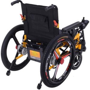 Ce fauteuil roulant électrique peut voyager dans l’herbe, le gravier ou la neige. Les amortisseurs de neige assurent un fonctionnement fluide sur tous les terrains.