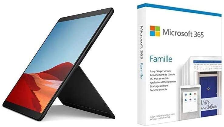Microsoft Surface Pro X (Windows 10, écran Tactile 13″, processeur Microsoft SQ1, 8 G + Microsoft 365 Famille | Box
