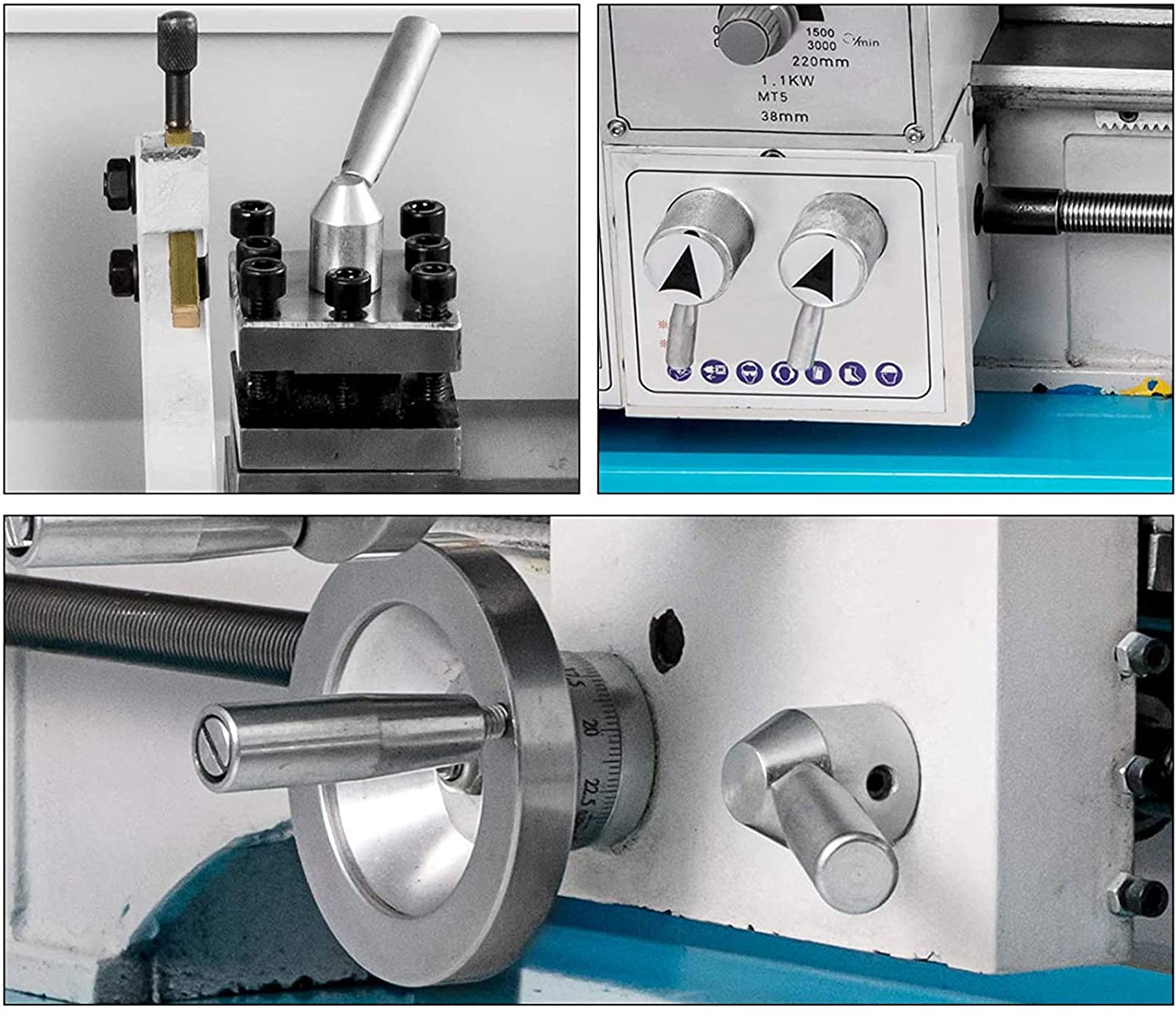 Cône dans la broche de la poupée mobile: MT2. Réglage des vis de réglage pour un fonctionnement précis.