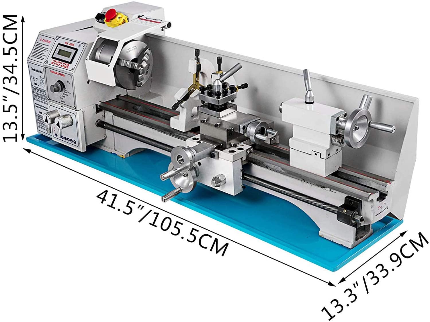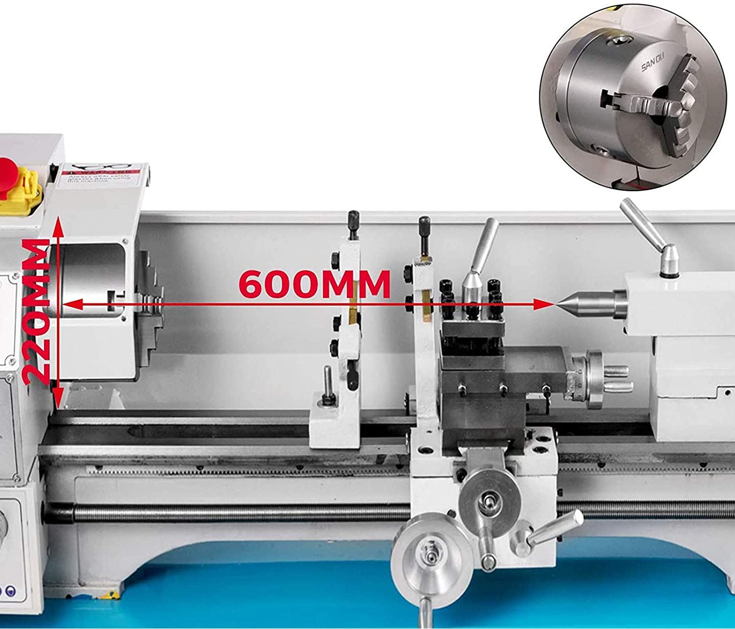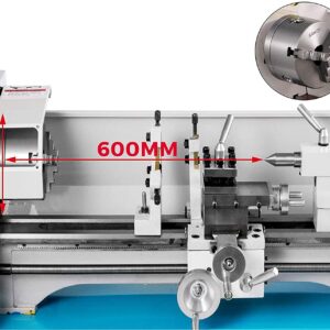 Lit pivotant: 8,7 “/ 220 mm, glissière transversale pivotante: 23,6” / 600 mm, diamètre du mandrin à 3 mors: 4,9 “/ 125 mm.
